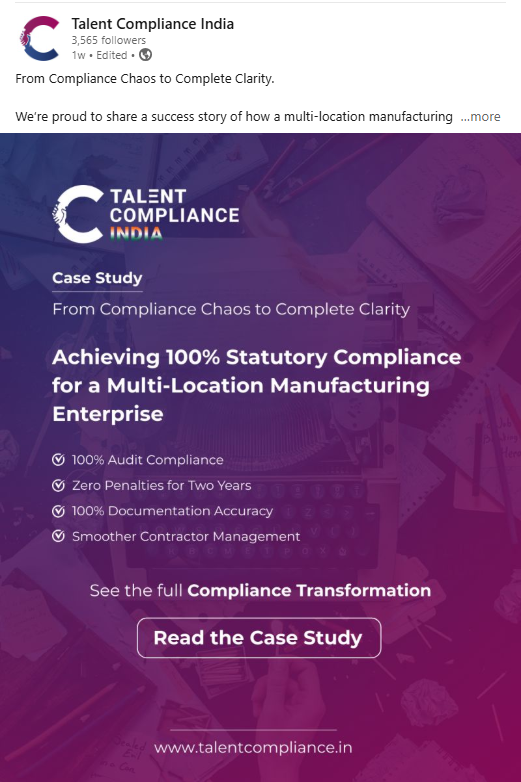 Simply told, working with Talent Compliance India Pvt. Ltd. is a pleasure. We have been saved by Talent Compliance India in this fast-paced world where time is money. We value Talent Compliance India’s ability to uphold efficiency and timeliness while consistently committing to friendly, individualised service.